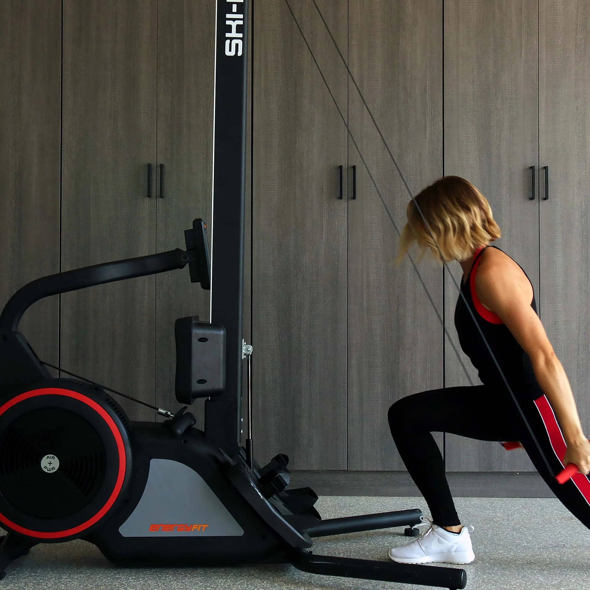 The SKI-ROW AIR+PWR by ENERGYFIT is a first of its kind dual-function High Intensity Interval Training machine. Its flexibility, space-saving design, and mobility are ideal for HIIT boxes, training studios, home gyms, and vertical markets.